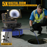 "PowerWill' s sewer inspection camera is the ultimate pipe inspection solution for professionals and homeowners alike. Its self- leveling camera head ensures every frame stays level—no more confusing angles during a drain camera check. Capture video or stills with a single press on the 10"" HD color screen, then zoom in up to 5 × to diagnose blockages, corrosion, or wall damage inside sewers, drains, chimneys, and HVAC lines.